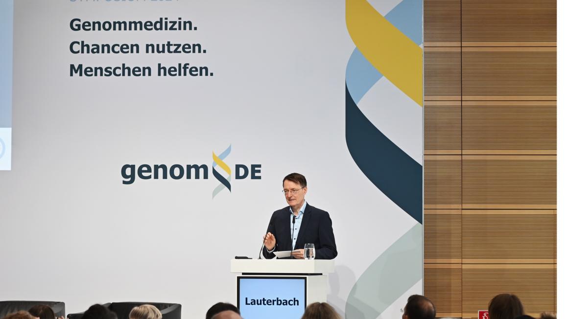 Bundesgesundheitsminister Prof. Karl Lauterbach erläuterte in seinem Grußwort die Bedeutung des Modellvorhabens Genomsequenzierung und verwies auf die erfolgreichen Vorarbeiten im Projekt genomDE und durch die beteiligten Leuchtturminitiativen:
