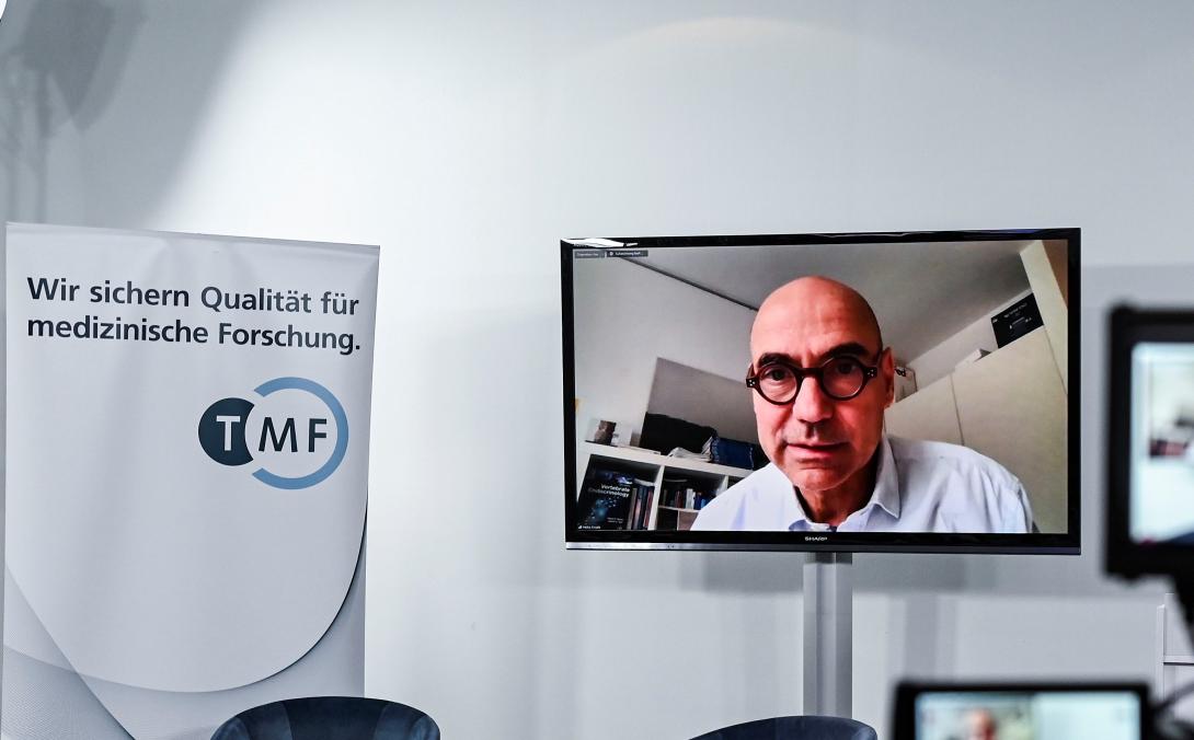 Die von Prof. Dr. Michael Krawczak (TMF-AG Medizinische Bioinformatik und Systemmedizin, Direktor des Instituts für Medizinische Informatik und Statistik, Christian-Albrechts-Universität zu Kiel) moderierte Abschlussdiskussion mit Prof. Dr. Nisar P. Malek, dem Ärztlichen Direktor der Abt. Innere Medizin I, Zentren für Personalisierte Medizin (ZPM) am Universitätsklinikum Tübingen, Prof. Dr. Olaf Rieß, dem Ärztlichen Direktor des Instituts für Medizinische Genetik und Angewandte Genomik und Präsident der Deutschen Gesellschaft für Humangenetik, ebenfalls vom Universitätsklinikum Tübingen sowie mit Prof. Dr. Markus M. Nöthen, dem Direktor Institut für Humangenetik vom Universitätsklinikum Bonn und seinem Kollegen Prof. Dr. Peter Schirmacher als Direktor des Instituts für Pathologie vom Universitätsklinikum Heidelberg zeigte, dass alle Beteiligten sich in diese Initiative zum Aufbau einer bundesweiten Plattform zur medizinischen Genomsequenzierung mit ihrer Expertise einbringen und an einem Strang ziehen wollen. Gemeinsames Ziel ist es, die Versorgung der Patientinnen und Patienten in Deutschland auf eine neue Stufe zu heben und ein wissensgenerierendes Versorgungsystem zeitnah innerhalb der kommenden drei Jahre bundesweit zu konzeptionieren bzw. zu etablieren.