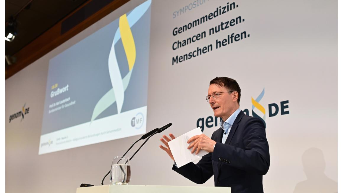 Bundesgesundheitsminister Prof. Karl Lauterbach erläuterte in seinem Grußwort die Bedeutung des Modellvorhabens Genomsequenzierung und verwies auf die erfolgreichen Vorarbeiten im Projekt genomDE und durch die beteiligten Leuchtturminitiativen: